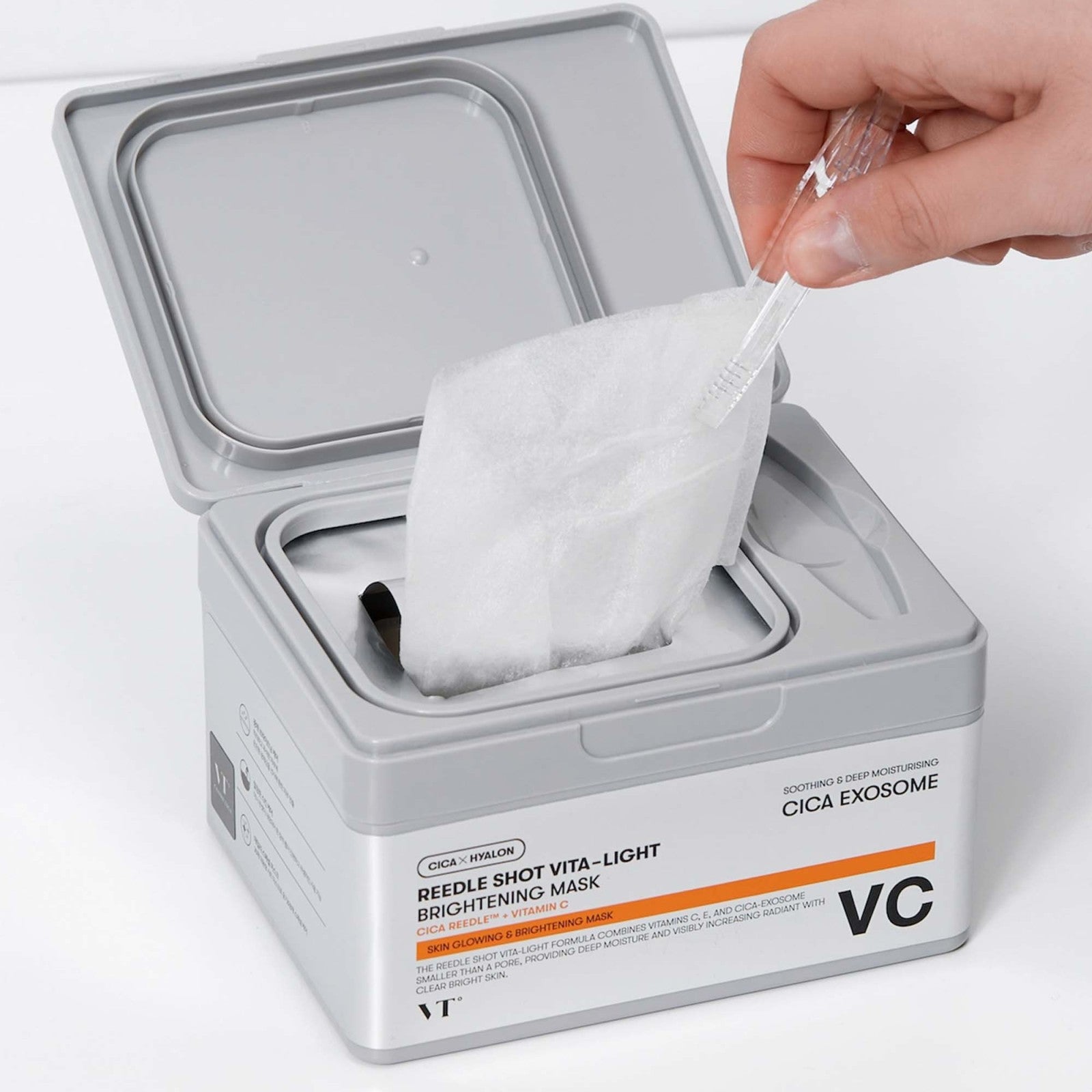 The Reedle Shot Vita-Light Brightening Mask is a brightening sheet mask formulated to even out skin tone, increase luminosity, and deeply hydrate the skin with a combination of vitamins, antioxidants, and botanical extracts. It uses Cica Reedle™ technology, a microchannel system that helps active ingredients penetrate without irritating the skin.